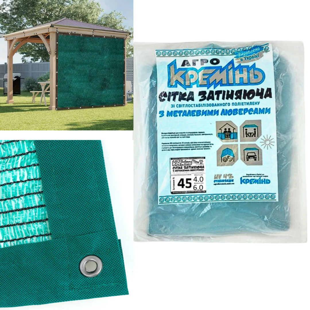Затіняюча сітка 45% 4 м*6 м посилена з люверсами для альтанки